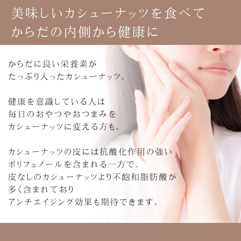 薄皮もあまさずローストした皮付きのカシューナッツです。