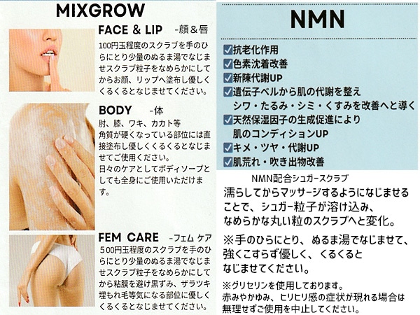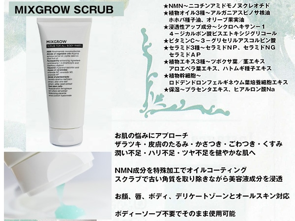 正規販売店 MIXGROW ミクスグロウ スクラブ 洗浄料 洗顔 200g シュガースクラブ 全身 顔 唇 ひじ 砂糖 NMN 保湿 mico ミコ