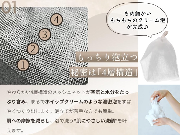 泡の力を最大限に引き出すオリジナル泡立てネット