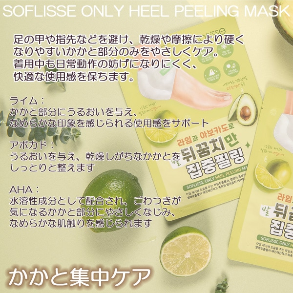 Soflisse かかと集中 ピーリング マスク 1回分入 踵専用 集中ケア 正規販売店 快適着用感 ライム 韓国コスメ